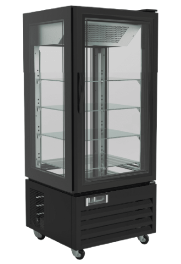 Τεσσάρων όψεων. Θερμοστάτης Dixel. Με ρόδες. Μέγιστη εξωτερική θερμοκρασία 32°C.  Mε γυάλινα ράφια. Θερμοκρασία -18°C/-22°C.