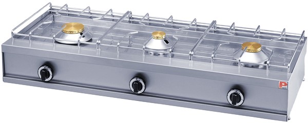 Σειρά αερίου πάγκου με τρεις καυστήρες. Αυτή η σειρά επιλέγεται από επαγγελματίες που είτε έχουν περιορισμένο χώρο, είτε θέλουν να έχουν περισσότερο ελεύθερο χώρο μπροστά από τη συσκευή και θέλουν να εργαστούν σε οριζόντια διάταξη.
