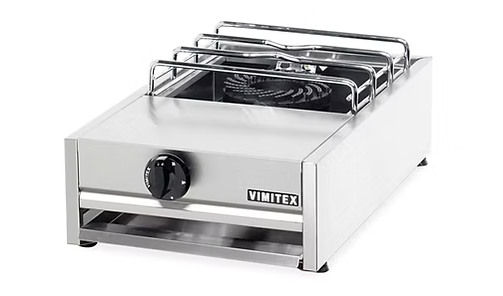 Εστία αερίου με 1 πολύ δυνατό καυστήρα για ισχυρή απόδοση και ταχύτητα. Ιδανική συσκευή για επαγγελματική χρήση σε εστιατόρια, μαγειρεία, ψαροταβέρνες και ταχυφαγεία με μικρές απαιτήσεις παραγωγής, τα οποία χρησιμοποιούν μεγάλες κατσαρόλες και τηγάνια. Μπορεί, επίσης, να ανταποκριθεί αποτελεσματικά και στις ανάγκες των επιχειρήσεων αρτοποιίας και ζαχαροπλαστικής. Οι βάσεις χρωμίου αποτελούν μια εναλλακτική, οικονομικότερη λύση για τον επαγγελματία και προσφέρουν ευκολία στον καθαρισμό, διατηρώντας πάντα την υψηλή ποιότητα της Vimitex.Συμπαγής, φορητή και λιτή στο σχεδιασμό της είναι μια συσκευή μεγάλης αντοχής και ένα εξαιρετικό εργαλείο για χρήση τόσο σε εσωτερικό όσο και σε εξωτερικό χώρο.