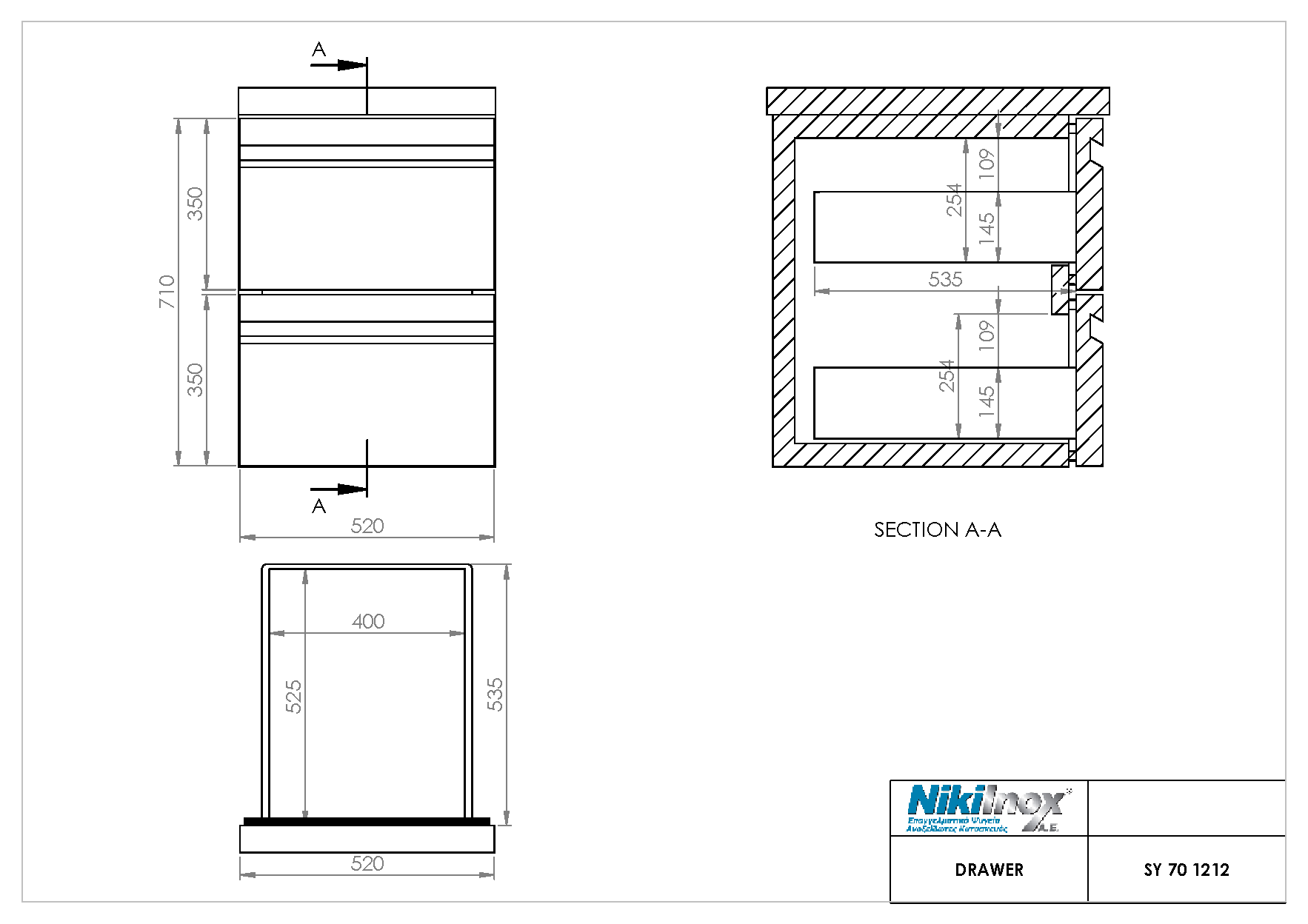 Συρτάρι για Ψυγείο Πάγκο Συντήρησης Niki Inox.