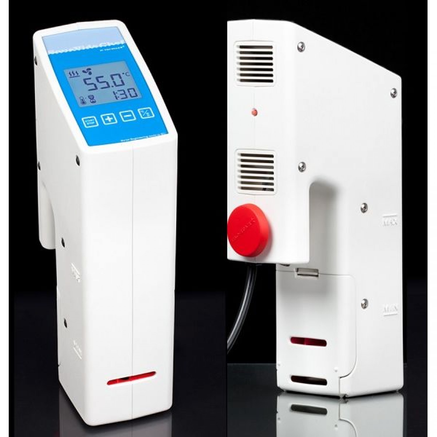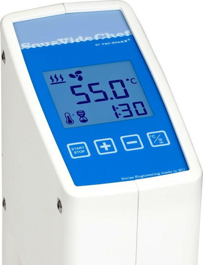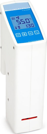 Με ηλεκτρονική ρύθμιση της θερμοκρασίας 1 λεπτό ως 99 ώρες. Alarm για χαμηλή στάθμη νερού. Ανοξείδωτο προστατευτικό καπάκι. Για λεκάνη μέχρι 40 Lit. Με τη μέθοδο του sous vide, η απόκλιση είναι από 0,07° C – 0,1 ° C, ώστε να μην υπάρχουν αυξομειώσεις στην θερμοκρασία και αλλοίωση της γεύσης. Υπάρχει ομοιόμορφη θερμοκρασία σε όλο το νερό του κάδου, ώστε το προιόν να ψήνεται ομοιόμορφα. Ψήνοντας στο νερό αντί του αέρα ή του ατμού, ο έλεγχος της θερμοκρασίας είναι πολύ πιο ακριβής. Όλοι οι αναγνωρισμένοι chefs παγκοσμίως έχουν συμπεριλάβει κάποια πιάτα στο menu τους με αυτή την μέθοδο.