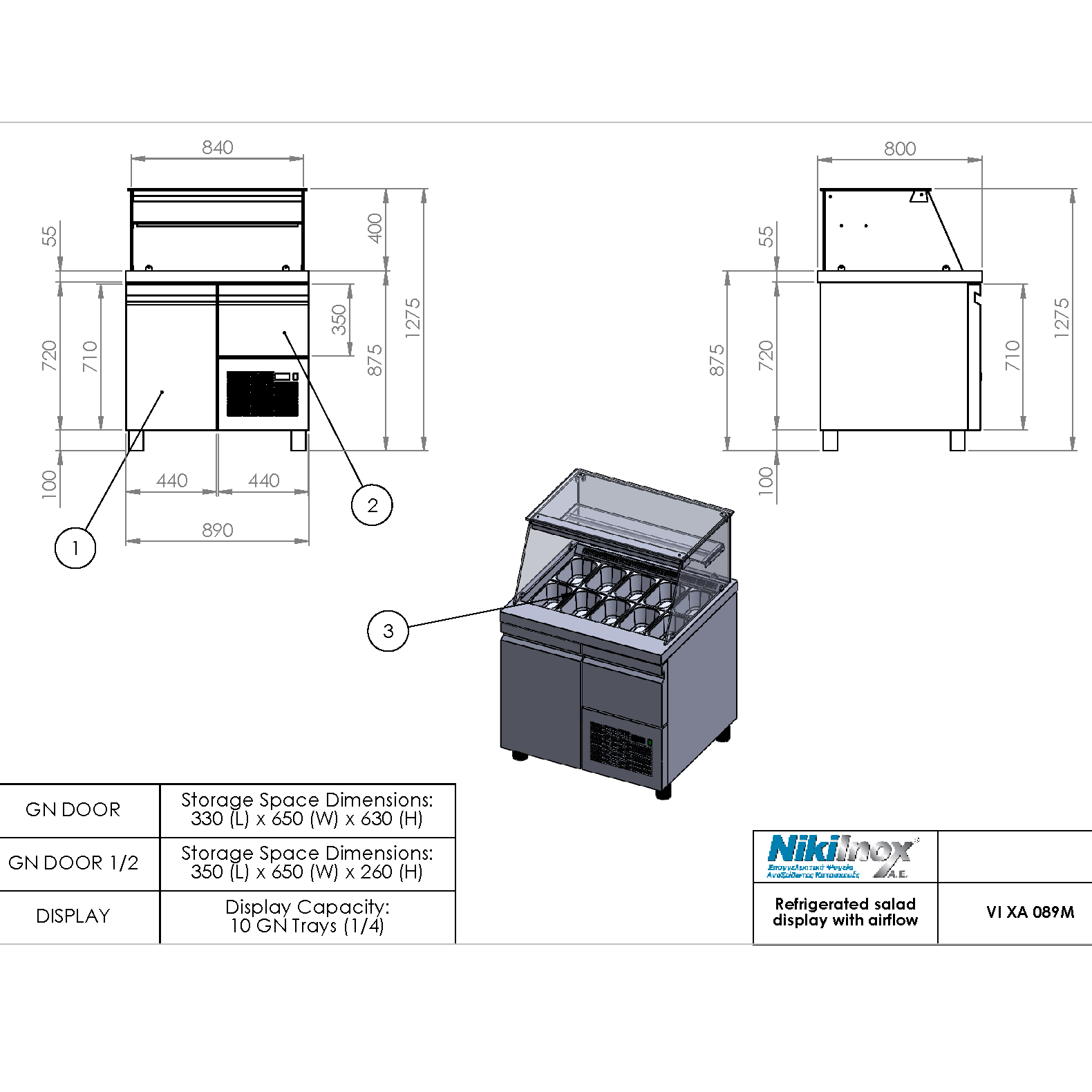 Εξωτερικές Διαστάσεις: 890 × 700 × 1290 mm