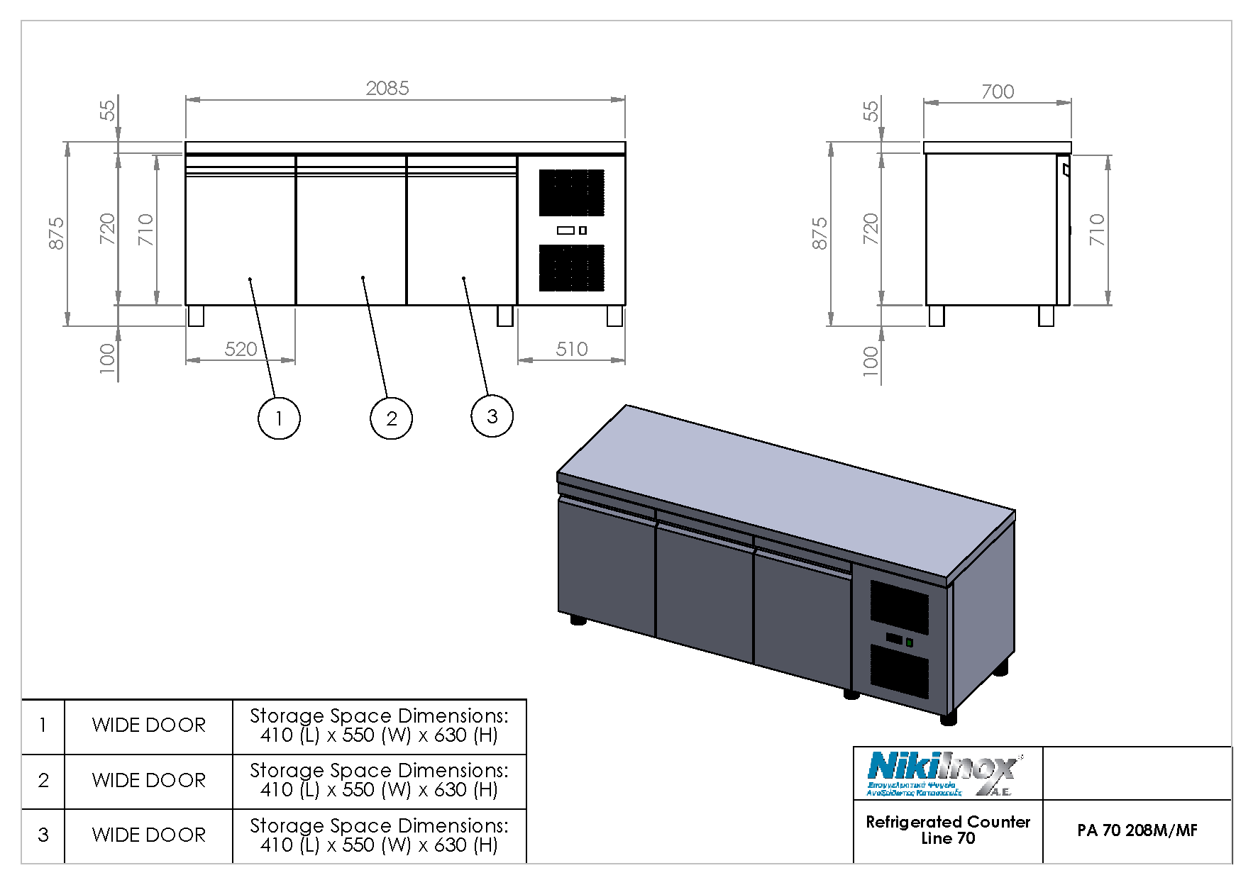 - Διαθέτει 1 σχάρα σε κάθε πόρτα