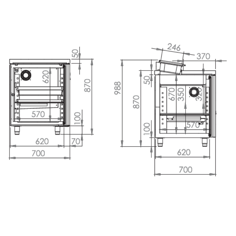 Ψυγείο ARTSTEEL με υψηλή απόδοση και χαμηλή κατανάλωση ενέργειας χάρη στη μόνωση πολυουρεθάνης υψηλής πυκνότητας και το ψυκτικό R290. Προϊόν υψηλής ποιότητας και φινιρίσματος, εύκολο καθάρισμα με στρογγυλεμένες γωνίες και αφαιρούμενες σχάρες, ουδέτερα συρτάρια, τοποθέτηση σε ρυθμιζόμενα πόδια και προαιρετικά ρόδες.