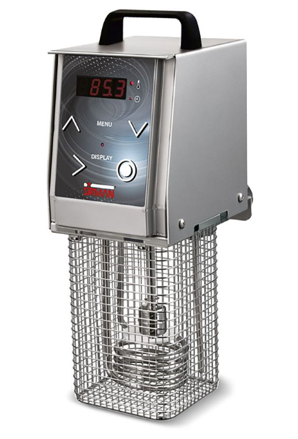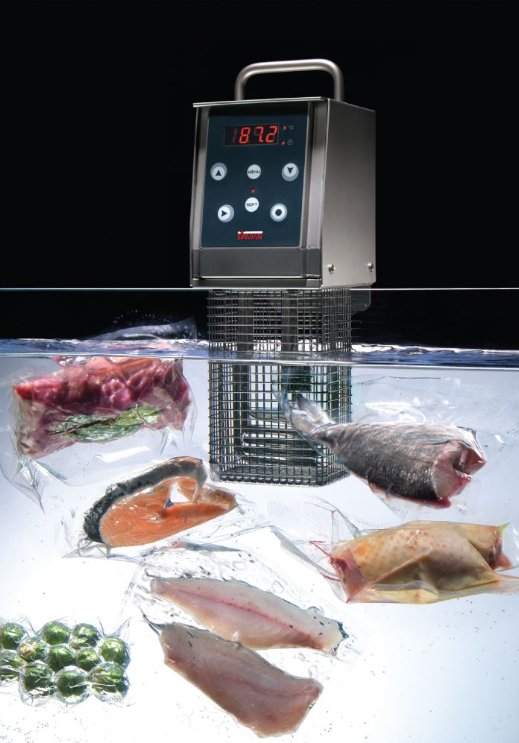 Συσκευή Sous vide Χειρός Softcooker του εργοστασίου Sirman. Μέθοδος μαγειρικής για αργό ψήσιμο συσκευασμένων προϊόντων (vacuum) σε νερό. Με τον τρόπο αυτό τα προϊόντα δεν χάνουν το βάρος τους, τις βιταμίνες τους και τη γεύση τους.